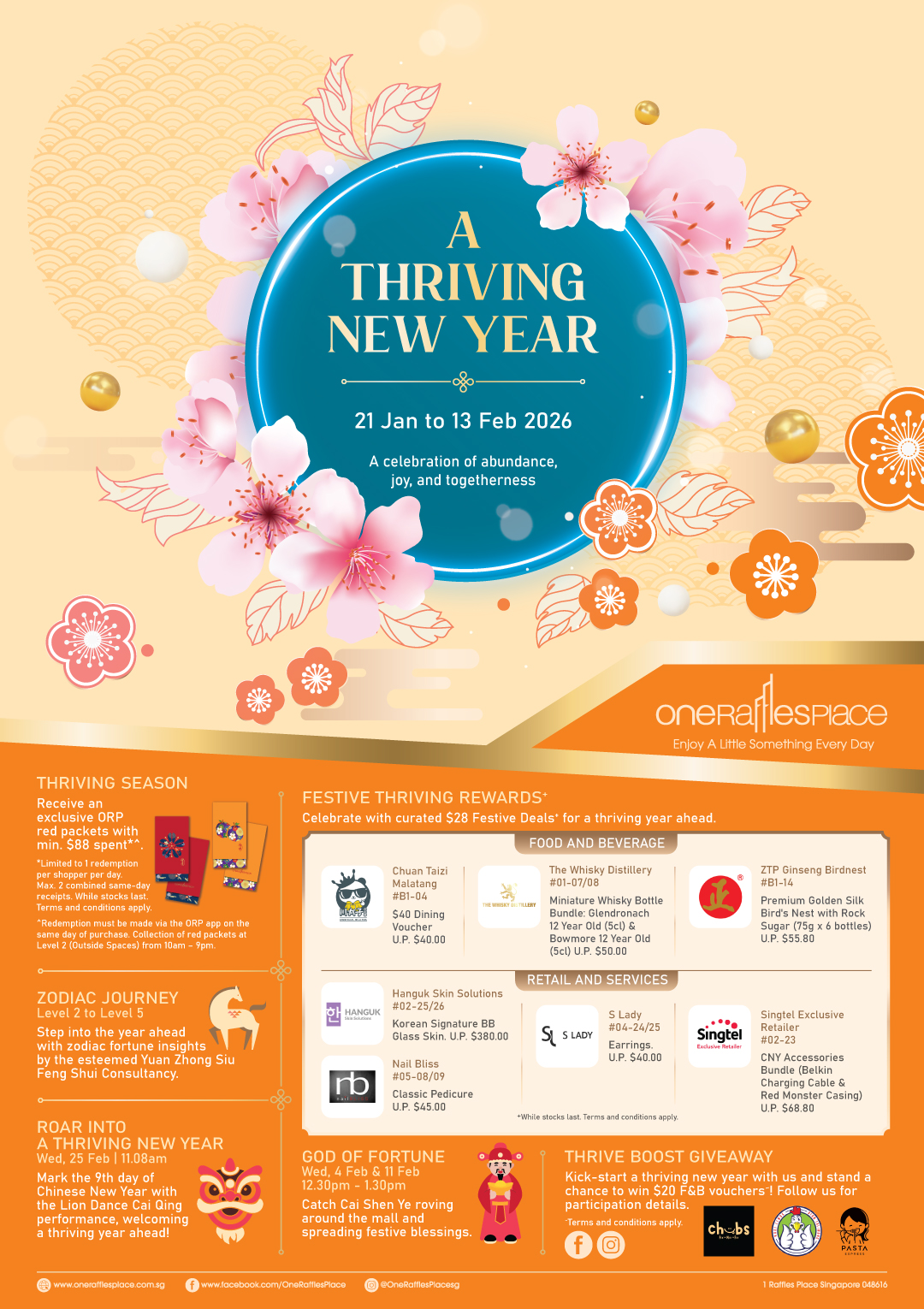 Thriving Season: *Limited to max 1 redemption per day. While stocks last. T&Cs apply. Refer to ORP app & our social media account for more details!